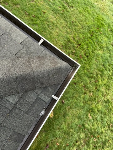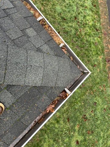 Clean, clear gutter after professional removal of leaves and debris on residential roof in Keizer, Oregon – Dou-Glass service results